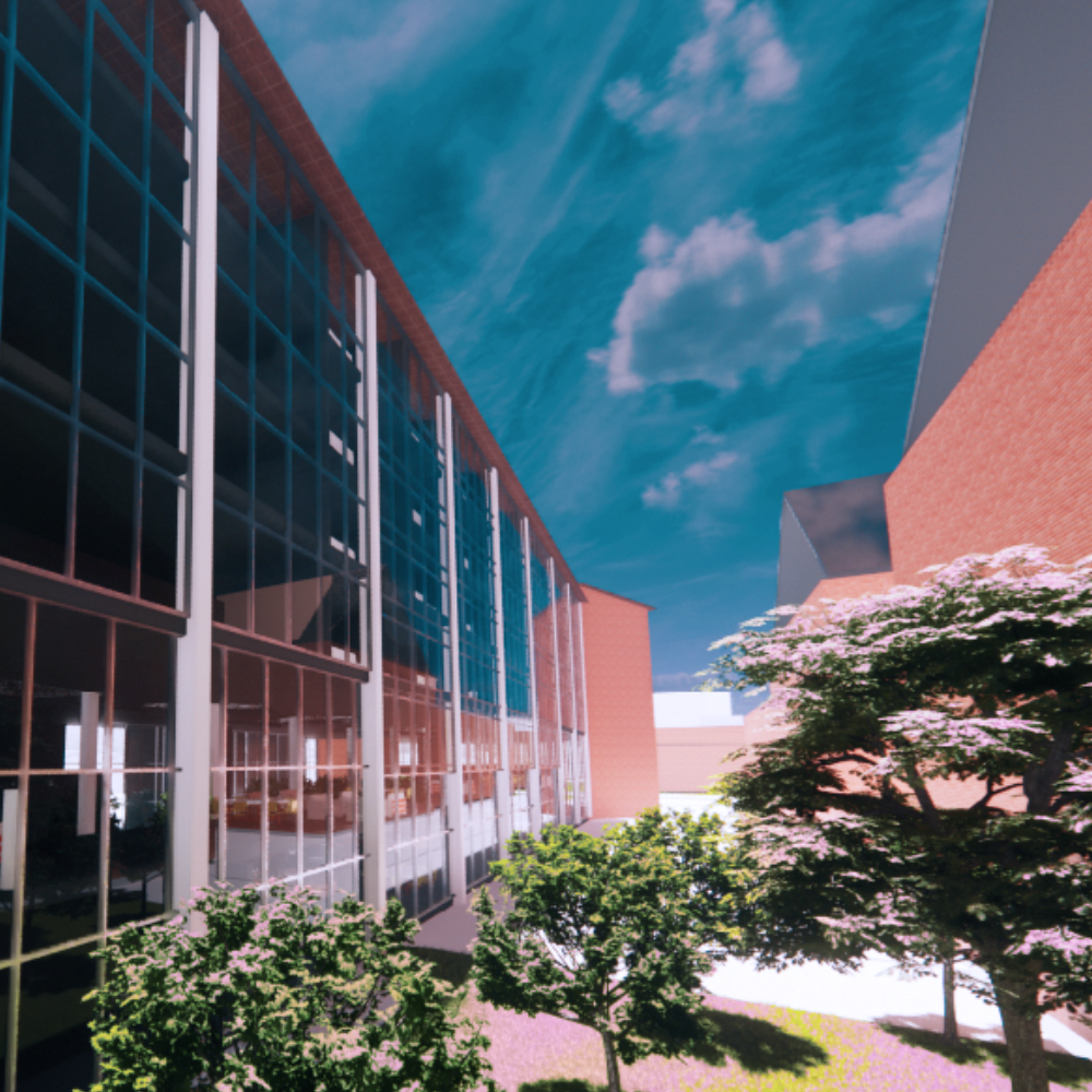 1.) To create a stronger, more inclusive campus community by having a variety of open study and lounge spaces along with dorms with multiple occupancies. 2.) To make a relaxing living space for young students by providing an atrium-conservatory with lots of natural light, a variety of community spaces, and natural elements throughout the building 3.) To use an eclectic layout with efficient circulation, balancing form and function. 4.) To have a cohesive style by mimicking the school’s architectural style of bricks, concrete, and red-accents. 5.) To provide safe and comfortable living spaces