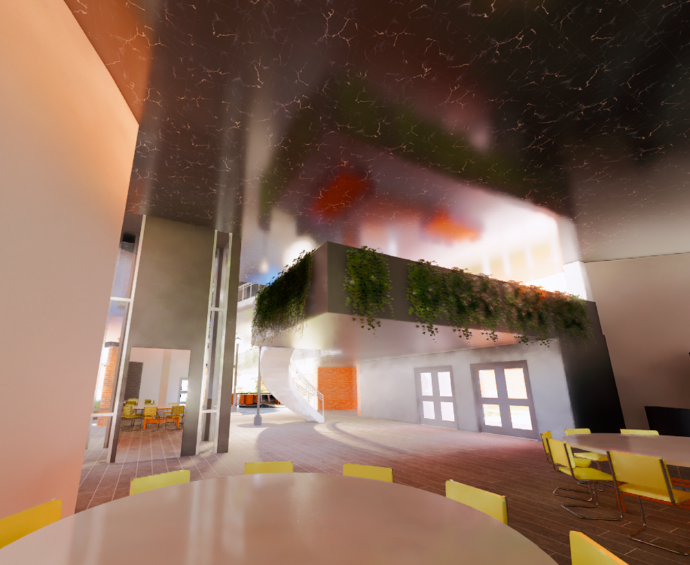Above: Render of interior pre-decision to move the nature closer to the south side of the building